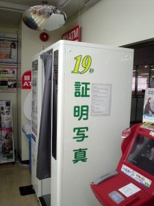 名古屋入管内のコンビニに一台だけ設置された証明写真機。駐車場待ちで行列、証明写真で行列、窓口で行列の3段階行列にならなければいいですが